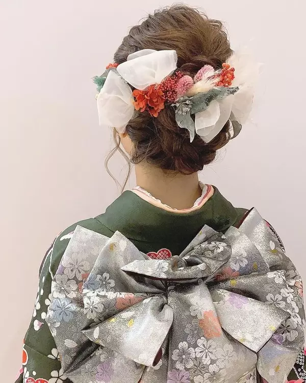 成人式 オーガンジーリボンアレンジ ガーリー派さんにオススメ オーガンジーリボンアレンジ Rili リリ